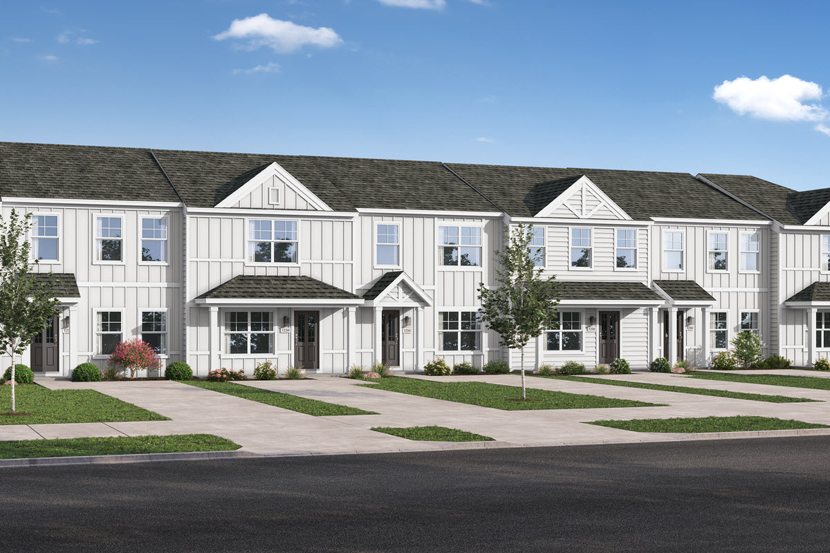 Our popular floor plan, The Tyndall, has one bedroom conveniently located downstairs on the main (with a full bath!) and is perfect for guests or a home office. Upstairs you’ll find a spacious, secluded primary suite with a generous walk-in closet and dual vanity in the private ensuite bathroom. The third bedroom is on the opposite side of the house and also features a walk-in closet and its own full bathroom. Enjoy a low maintenance, residential lifestyle as lawn care is a complimentary service.